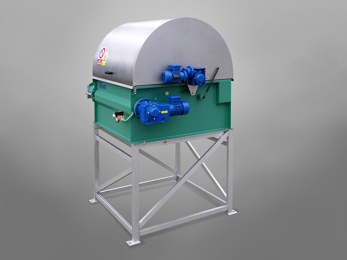 - it is usually installed in small WWTPs and in various industries; it captures solids at filtration strainer that are wiped by rotating brushes and transported to a container or the press for screenings (SVSLS variant).